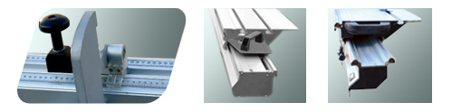 2、  移动滑动台采用高强度铝合金制造、表面氧化强度高、多腔结构不变形                                   3、  主锯片及划线锯片高度调整,手轮转动升降。